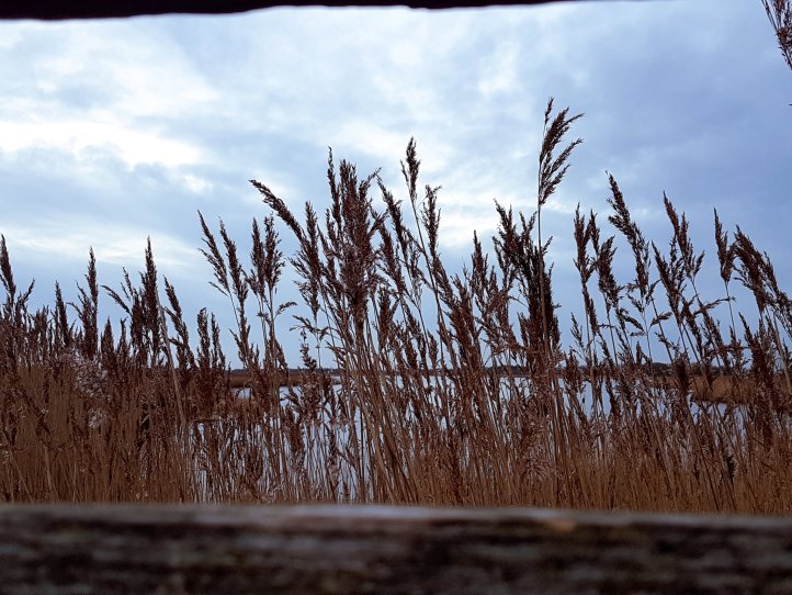 I can hear bearded tits pinging. Geese. Ducks. How many species? A kingfisher peeps in the distance. A rustle on the ground. A cow lows in a field, somewhere far off.